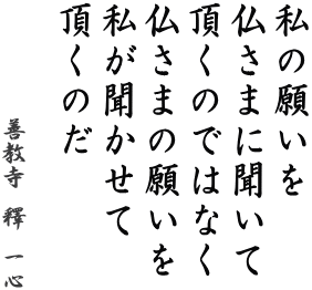 今月の法語「私の願いを仏さまに聞いて頂くのではない 仏さまの願いをお聞かせ頂くのだ」はそういう意味。