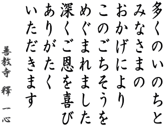 「多くのいのちと、みなさまのおかげにより、このごちそうをめぐまれました。深くご恩を喜び