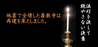 | 平成28年熊本地震で全壊した善教寺は、令和7年に再建致しました。多くの皆さまのご協力に心から感謝申し上げます。 | ||||||||