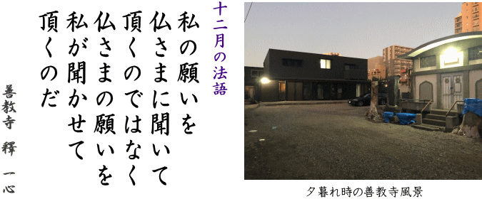 ・本堂完成お披露目、御正忌報恩講修行のお知らせ 2025.11.28 NEW ! ・責任役員、門徒総代新人事についてのお知らせ 2025.10.31 NEW ! ・第1回 法話セッションを開催しました 2025.9.28 ・納骨堂周りの樹を伐採しました 2025.6.30 ・善教寺再建の完了検査に合格しました 2025.5.30 ・熊本別院のホームページに西守の法話が掲載されました 2024.3.1 ・善教寺外観イメージをアップしました 2024.1.19 |